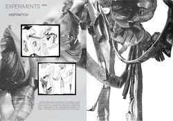 In this book, you can find 4 experiments. Each experiment shows how interesting and difficult is to work on the research part of every project. There are a lot of sketches, collages, messy pages with random images and illustrations, modeling on the mannequin and experimenting with different materials.